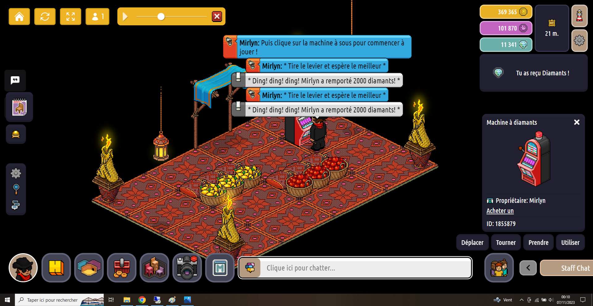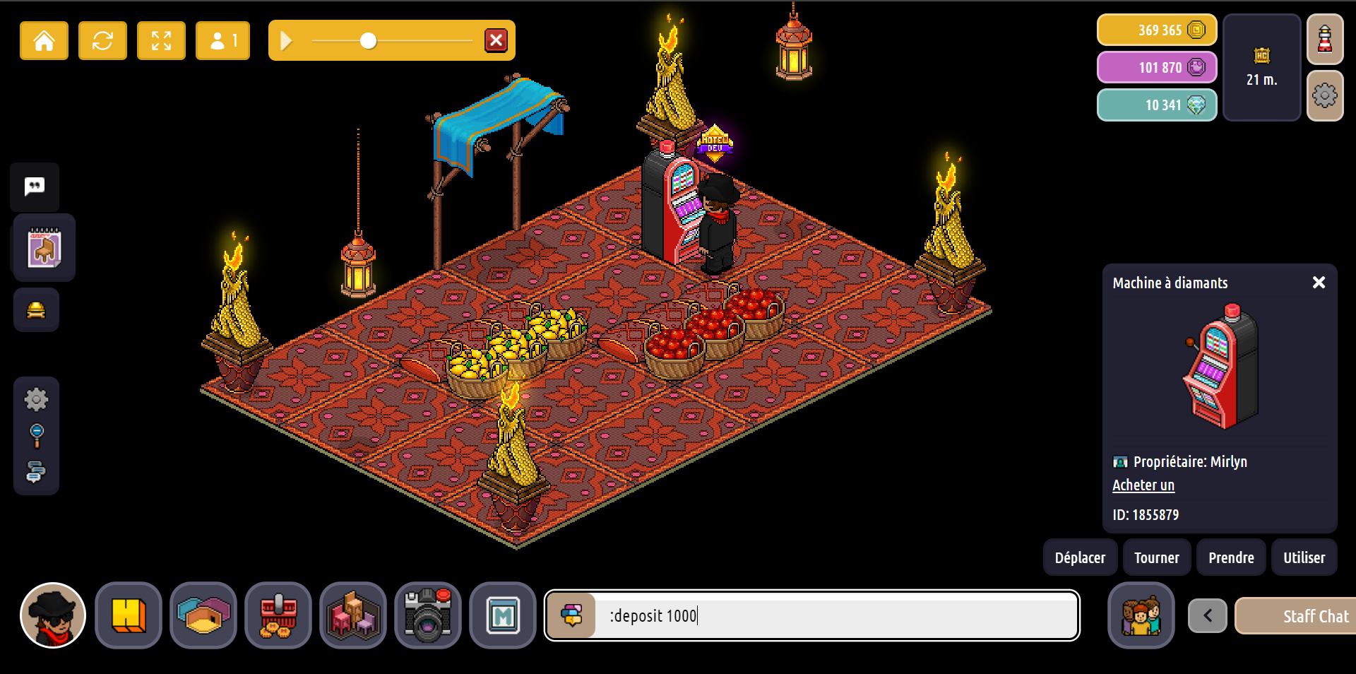 pour ma part j'ai choisi la machine à sous des diamants puis tape :deposit 1000 par exemple.
